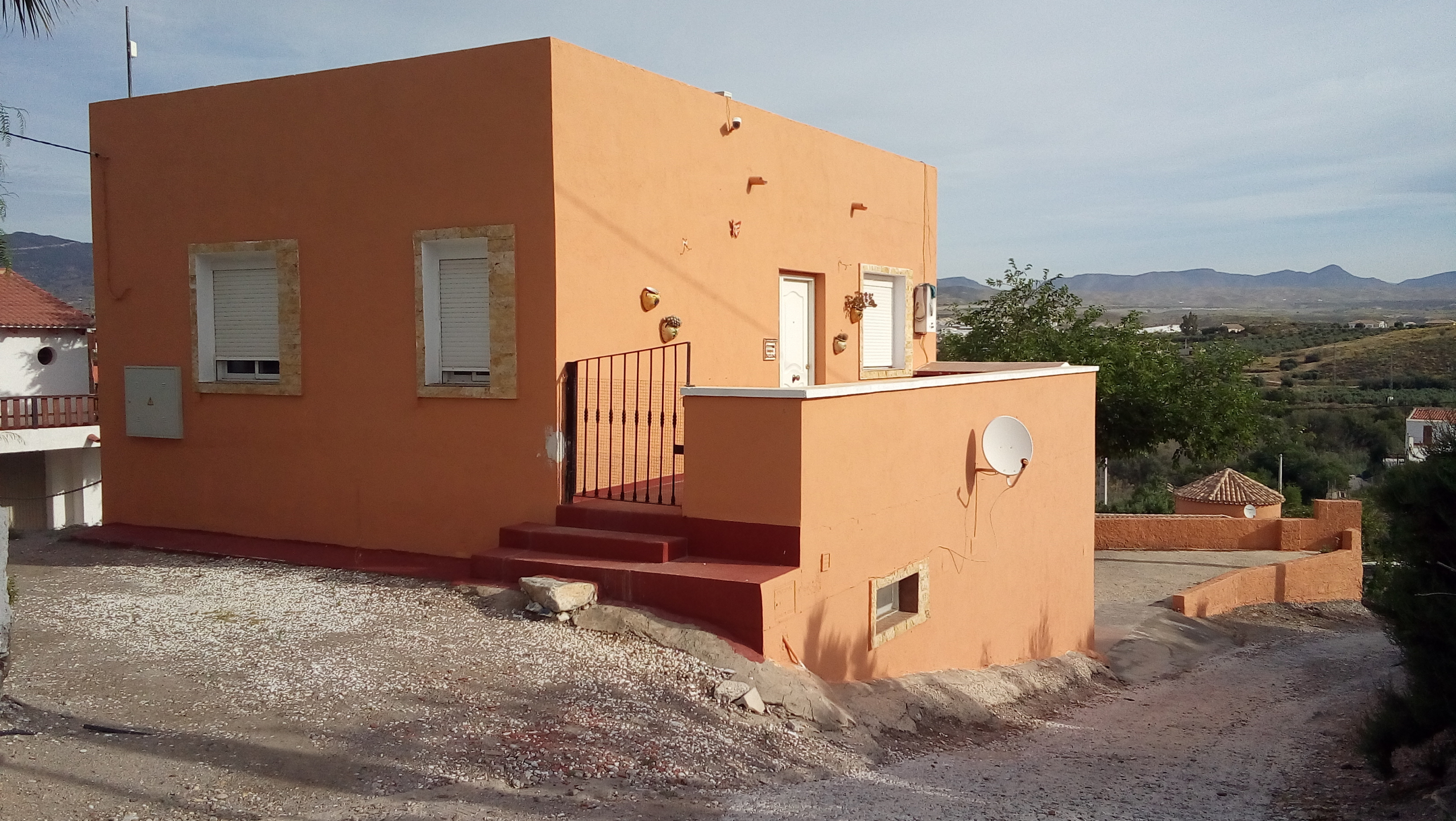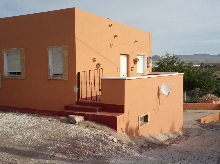 Propiedad localizada en en la Hoya de Cantoria. La finca consta de dos apartamentos , 140 m2 de superficie construída. Con entrada independiente ,así como suministros de agua y luz. Cada apartamento consta de salón cocina, un baño y dormitorios. La planta primera tiene una amplia terraza. En la planta baja hay un pequeño porche.