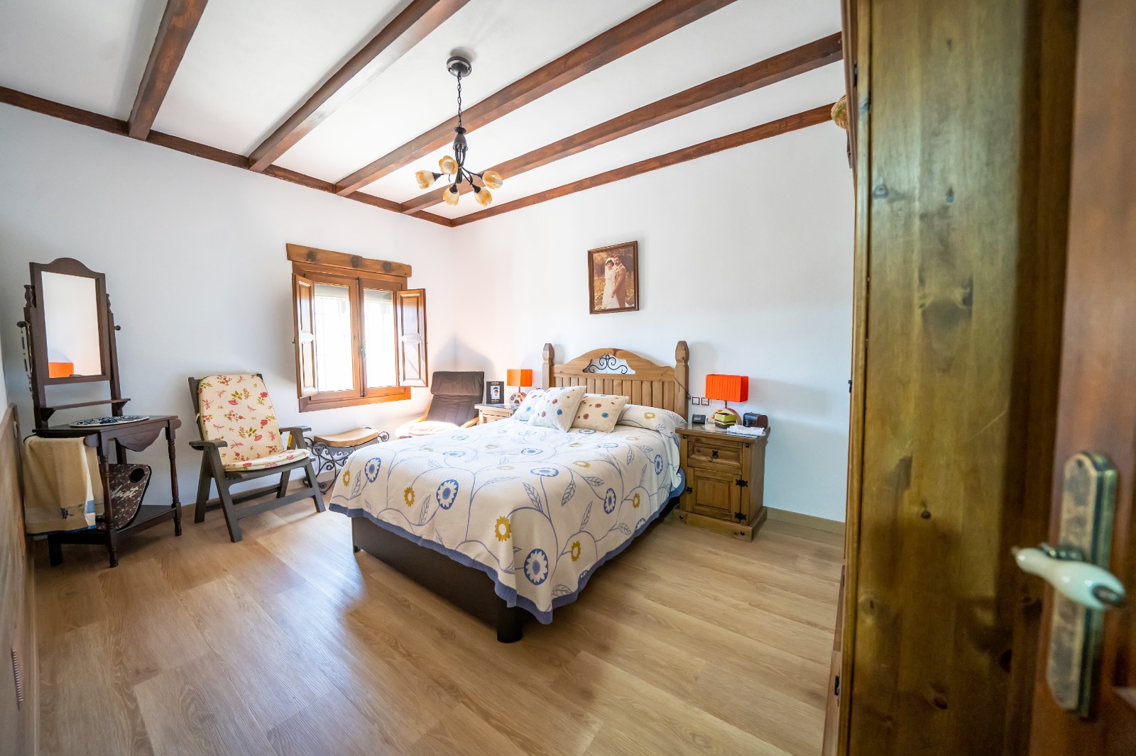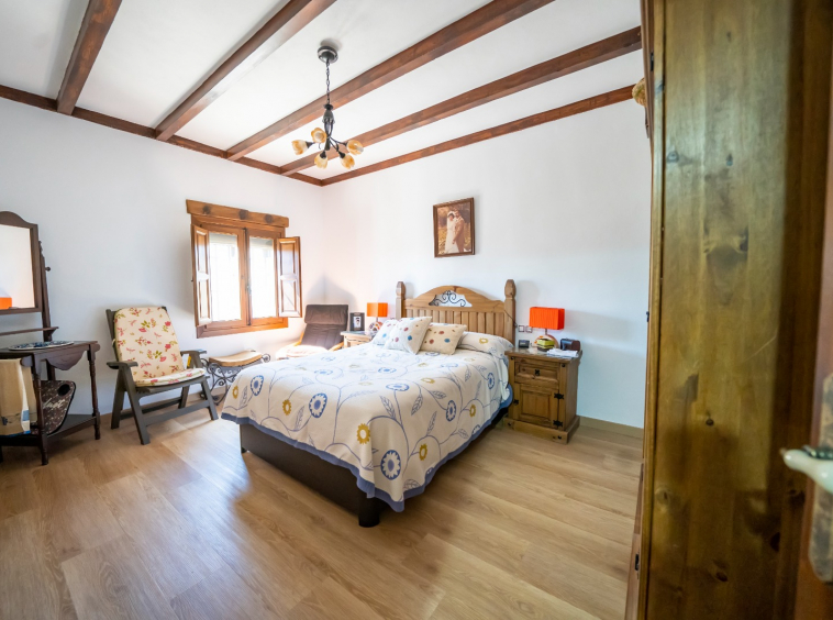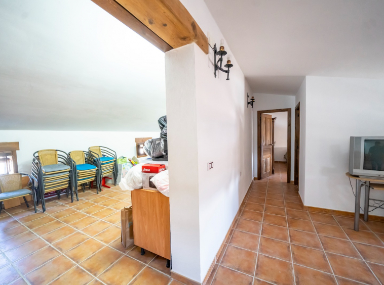 Cómodo, amplio y acogedor cortijo de 280 m2 de nueva construcción. Localizado a 10 minutos de Cantoria, próximo al popular bar Los Pedreros. Situado en una parcela de 1000 m2 , vallada perimetralmente. El cortijo consta de dos plantas. La planta baja tiene dos habitaciones dobles, baño completo y una gran estacia destinada a cocina salón. En esta sala está la escalera de mármol que conduce a la segunda planta.