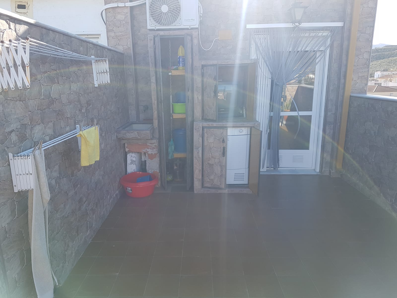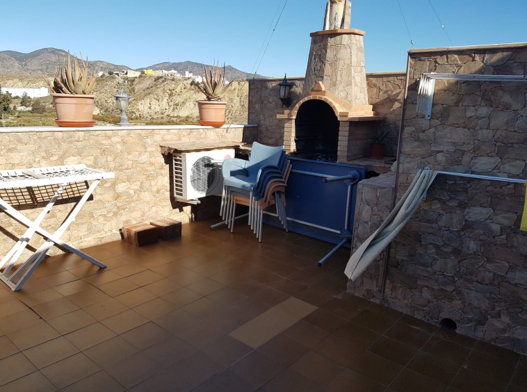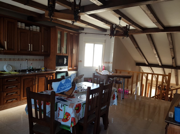 La propiedad se distribuye en dos plantas con una superficie de 140 metros cuadrados. En la primera planta se encuentran tres dormitorios, un baño y salón. En la segunda planta se dispone de amplia cocina de más de 20 metros cuadrados. Desde aquí se accede a un gran terraza con barbacoa.